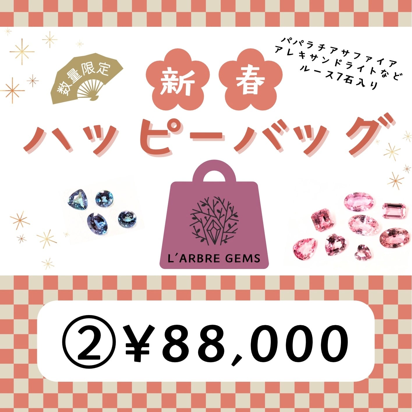 ② 新春ハッピーバッグ(鑑別書付きパパラチアサファイア、アレキサンドライトを含む7石)